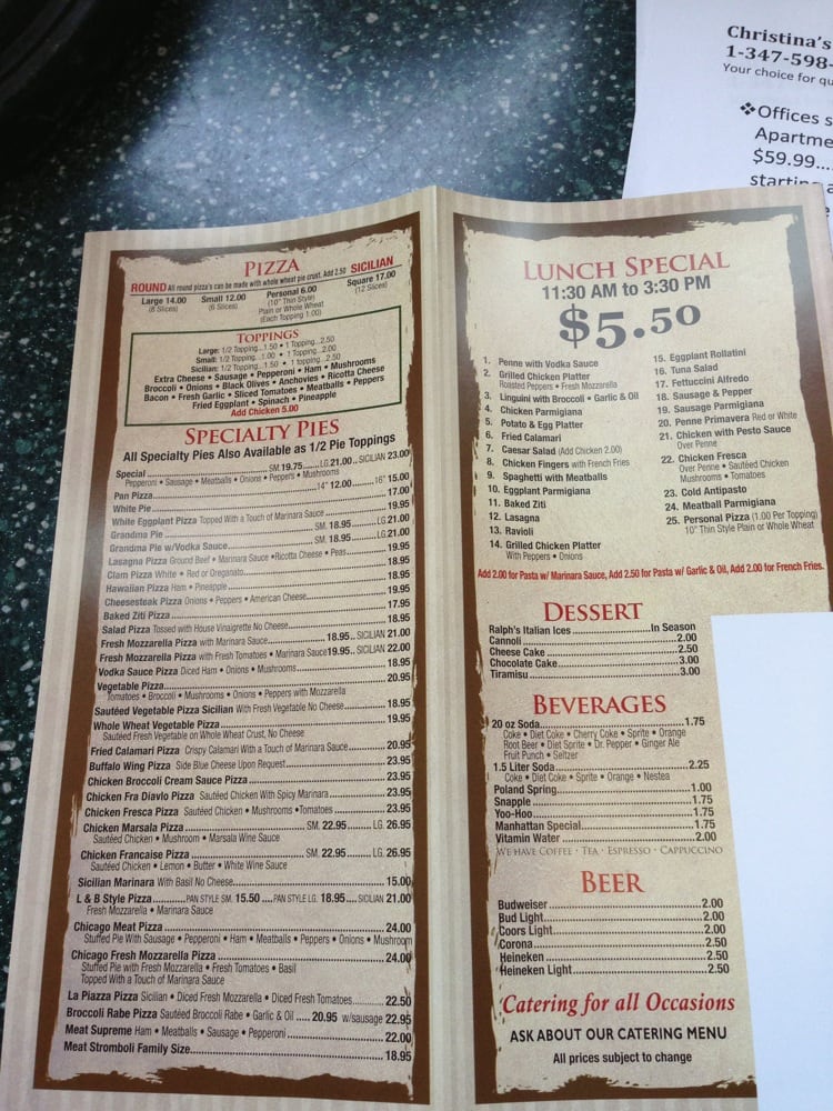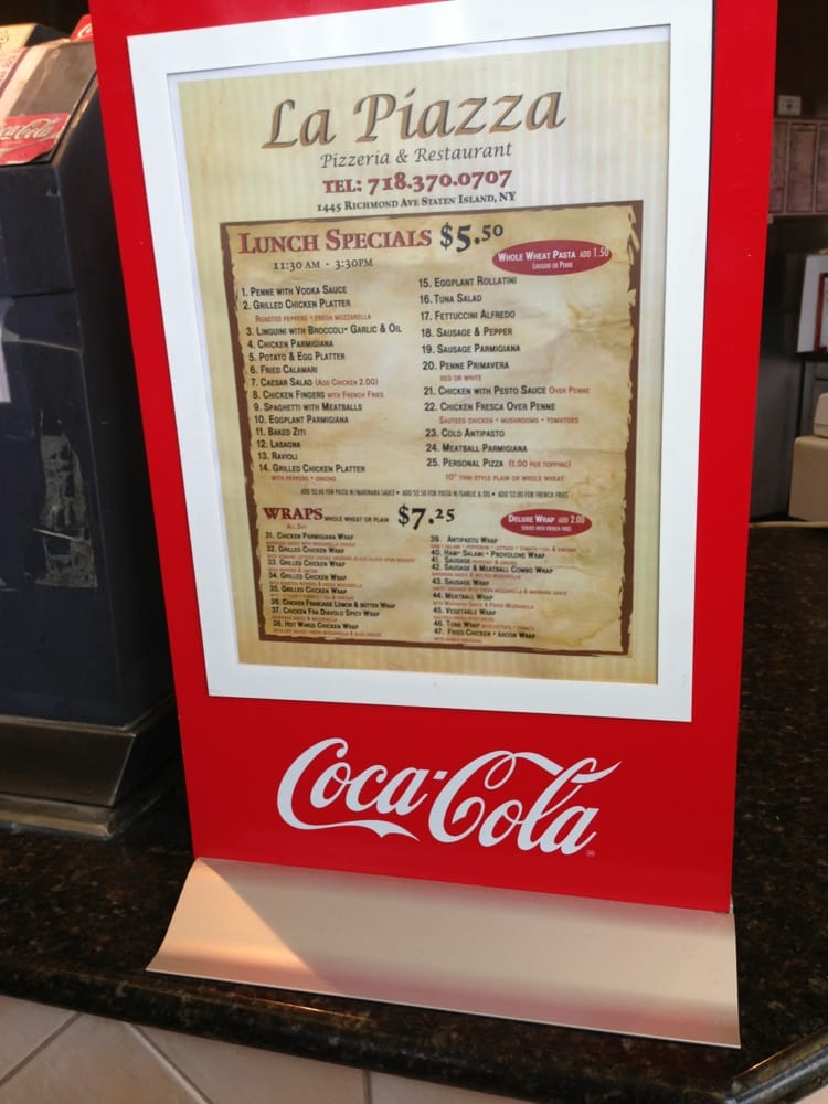 La Piazza Pizzeria and Restaurant is a local gem in Staten Island, NY, offering a wide range of delicious pizza and Italian dishes. The menu includes appetizers like garlic knots and pepperoni sticks, hearty soups, and fresh salads. Customers rave about the penne vodka and the catering options, praising the prompt delivery and friendly service. The lunch specials are a hit, with options like baked ziti and grandma slices that are both filling and flavorful. The welcoming atmosphere and tasty food make La Piazza a go-to spot for families and friends looking for a satisfying meal. Don't miss out on trying their signature dishes like the heat chicken fra diavlo and overloaded calamari slice for a truly memorable dining experience.